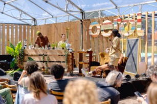 De theatervoorstellingen worden speciaal, vaak ter plekke, voor de locaties gemaakt, of daarop aangepast. Eventjes weg uit de schouwburg en op naar het strand, de duinen, het bos, de schuur, de dijk of gewoon op straat. Waar u ook kijkt, er gebeuren altijd mooie, rare of verbazingwekkende dingen.